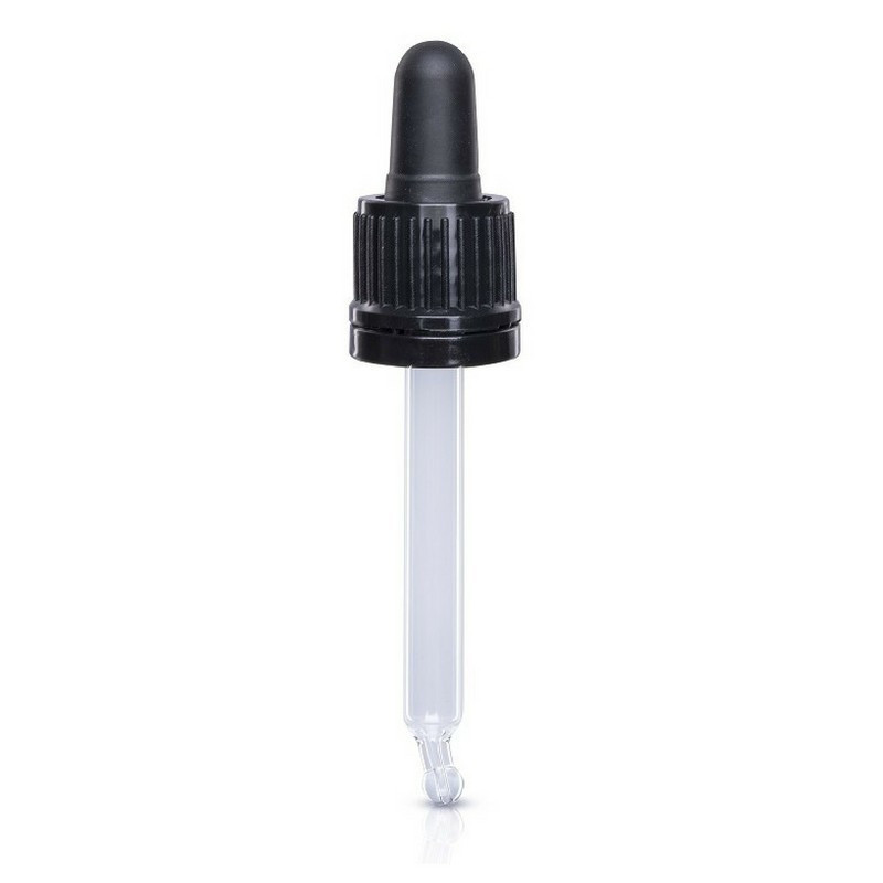 Pipeta szklana - zakraplacz fi 18 z czarną nakrętką do butelki 100 ml.