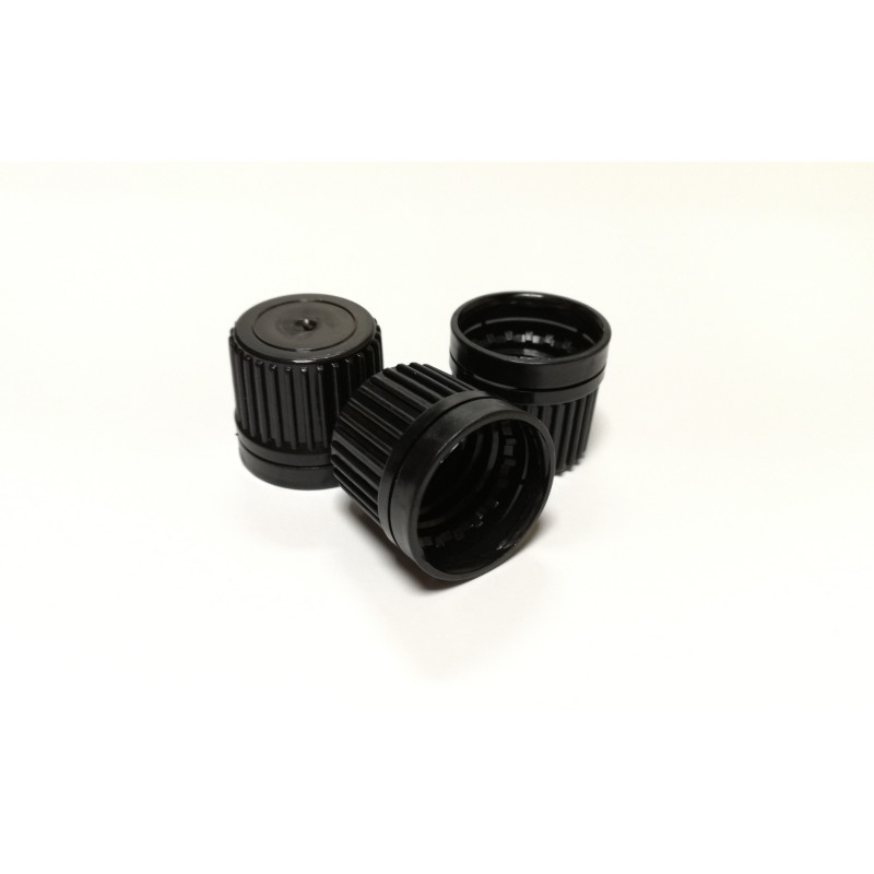 Nakrętka czarna fi 18 z pierścieniem gwarancyjnym i kroplomierzem (10 szt.)